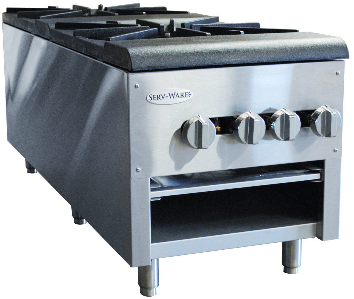 Dual ring cast iron burners with heavy duty cast iron grate. Stainless steel front and side panels with adjustable heavy duty legs. Zinc alloy knob with chrome coating.