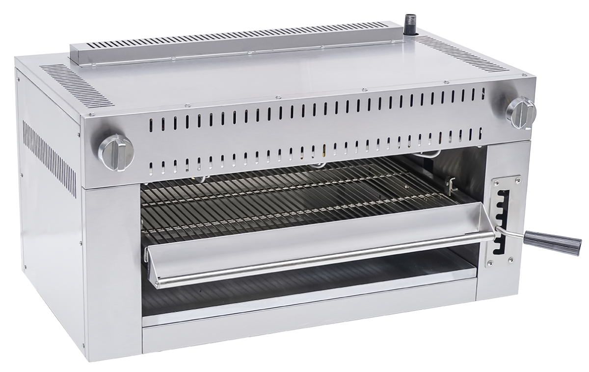 Stainless Steel construction with a Stainless Steel crumb pan and Cast Iron burners