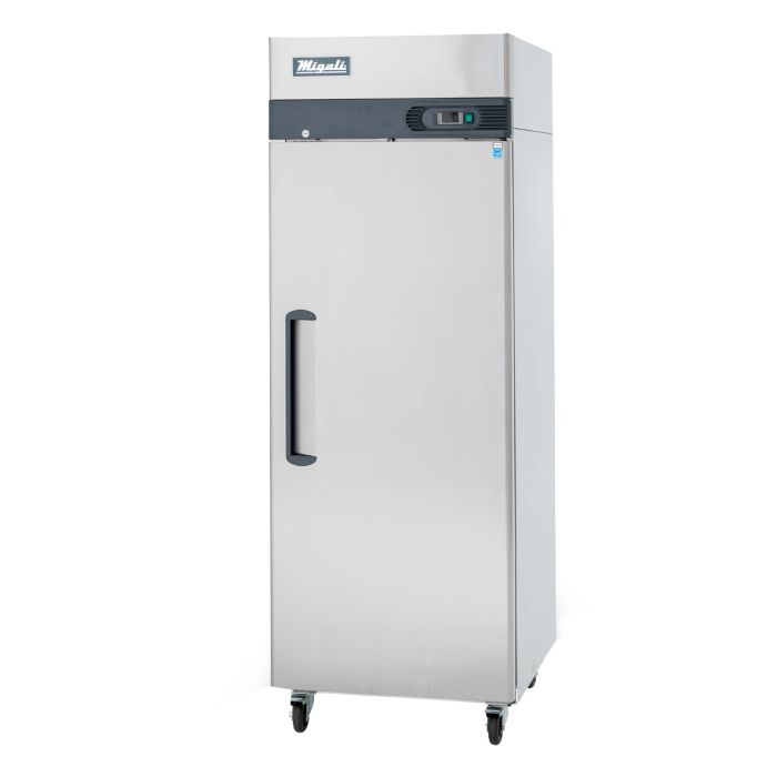The Migali® C-1F reach-in freezer is excellent for storing all types of food in a commercial kitchen. The reach-in series is designed with a robust forced air refrigeration system for cold, uniform temperatures throughout the cabinet’s interior. This model also incorporates a digital controller and temperature read-out for greater temperature control, increased energy efficiencies and top-of-the-line performance. The C-1F is equally eye catching and ergonomic, boasting a high polished stainless steel exterior and interior, rounded door edges and a recessed door handle. The 23 cu/ft interior is spacious and comes standard with 3 adjustable shelves, however, an optional bun rack for 18″x 26″ sheet pans or 12″ by 20″ hotel pans will also fit inside the interior’s cavity.