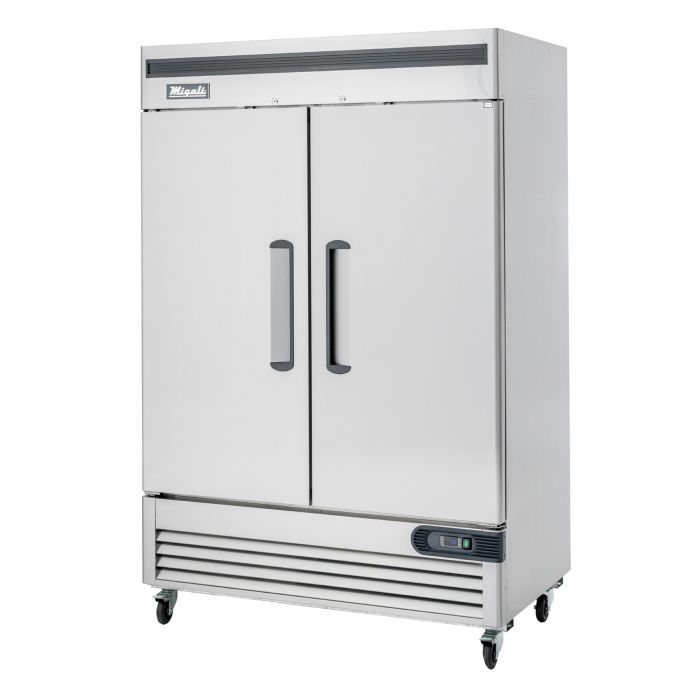 The Migali® C-2RB-HC reach-in refrigerator is excellent for storing all types of food in a commercial kitchen. The reach-in series is designed with a robust forced air refrigeration system for cold, uniform temperatures throughout the cabinet’s interior. This model also incorporates a digital controller and temperature read-out for greater temperature control, increased energy efficiencies and top-of-the-line performance. The C-2RB-HC is equally eye catching and ergonomic, boasting a high polished stainless steel exterior and interior, rounded door edges and recessed door handles. The 49 cu/ft interior is spacious and comes standard with 6 adjustable shelves, however, an optional bun rack for 18”x 26” sheet pans or 12” by 20” hotel pans will also fit inside the interior’s cavity.