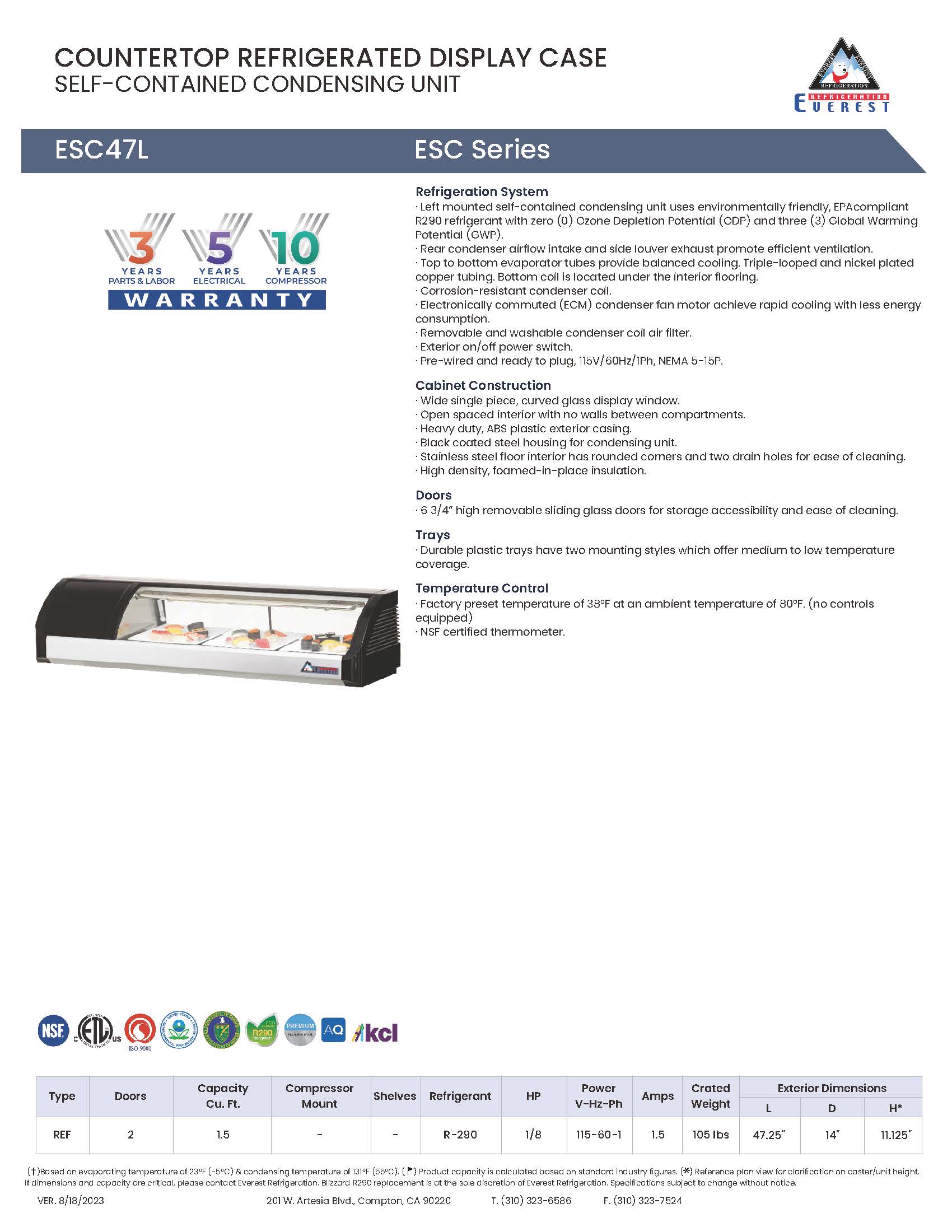 The Countertop Refrigerated Display Case series is a great way to showcase the bestselling items while keeping them refrigerated. They are often placed front-of-house and typically used for sushi, appetizers and desserts. The line uses natural, climate-friendly, hydrocarbon refrigerant, an effective alternative to hydrofluorocarbon-based refrigerants that meets the daily energy consumption standards of the U.S. Department of Energy and the Environment Protection Agency. Enjoy significant reduction in energy costs and carbon emissions with more efficient cooling.