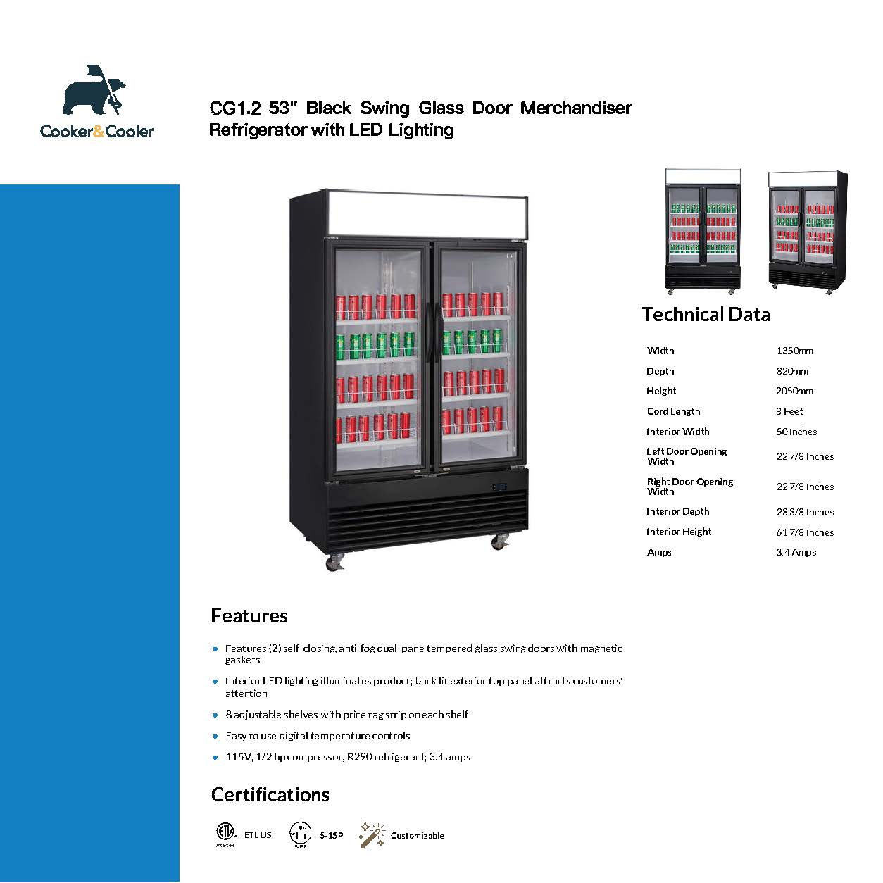 CG1.2 Door Merchandiser Refrigerator, 53"*32"*81", 1-Year labor & Parts 5-Year compressor