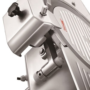 Our KWS slicer features a built- in sharpener that both hones and sharpens the blade. It helps the blade to maintain a sharp edge for slicing by pushing the front and back button for a couple of seconds, ensuring that your blade is always razor sharp and ready to slice. MS-12A slicer also equipped with rear-mounted thickness stop which allows for quick adjustment to commonly used thicknesses.