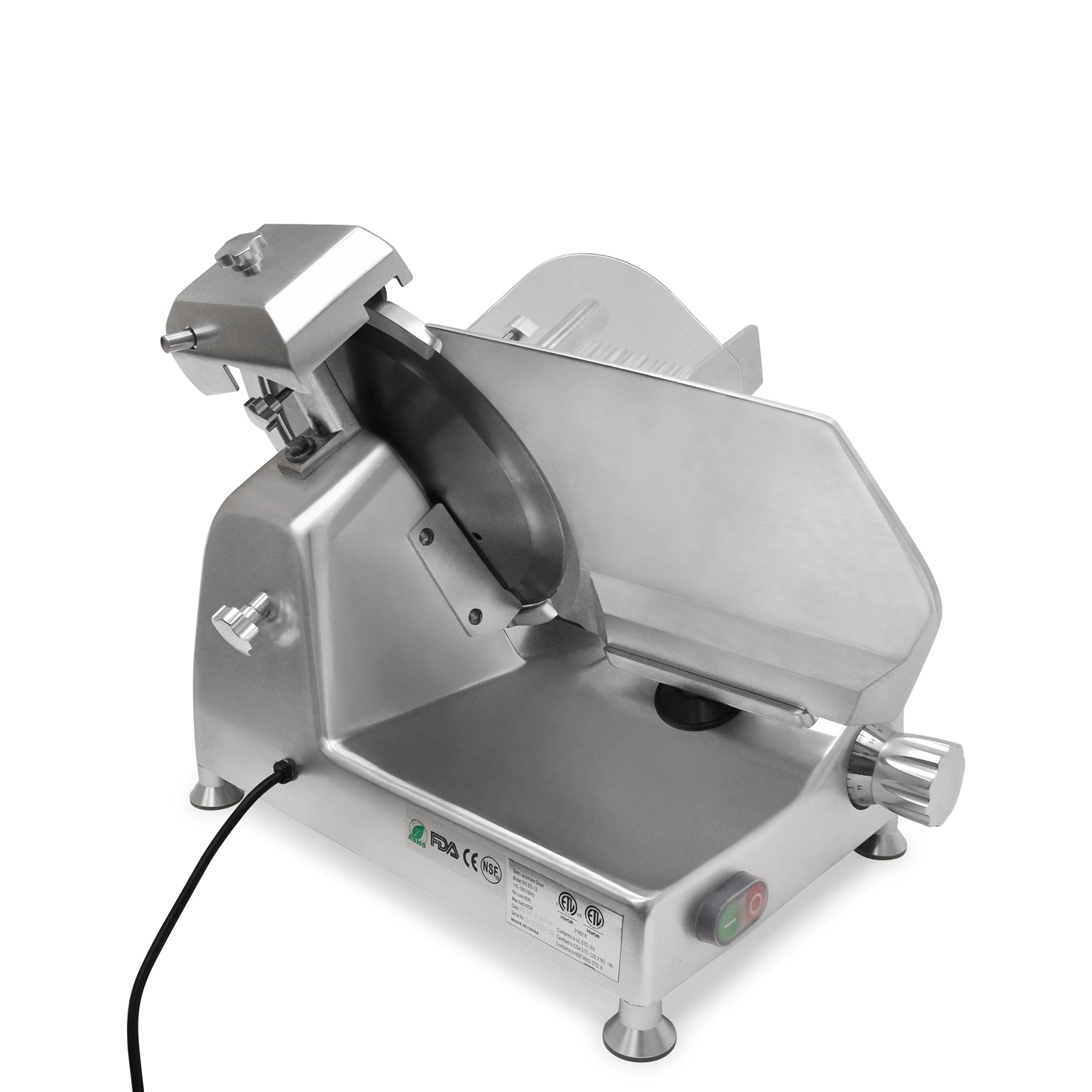 Our MS-12DT metal collection meat slicer is made of premium material for durability. Parts such as legs, product grip handle, product tray handle, carriage release knob, thickness adjustment control etc. are all made with top quality aluminum instead of plastic.