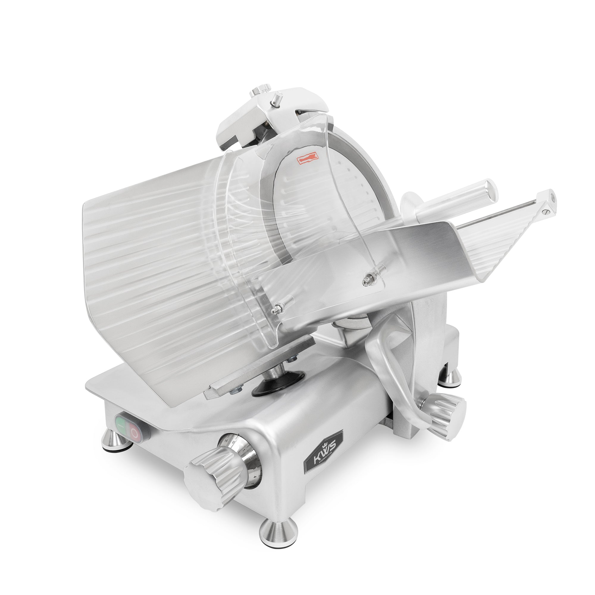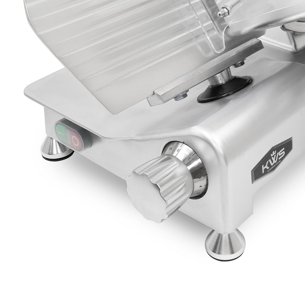 The KWS on- off switch and relays are built separately which can highly prevent them from damage together at the same time. Parts such as legs, thickness adjustment control, carriage release knob, product grip handle etc. are all made with high quality aluminium alloy instead of plastic, giving the slicer a luxurious looks with a more durable body that built to last.